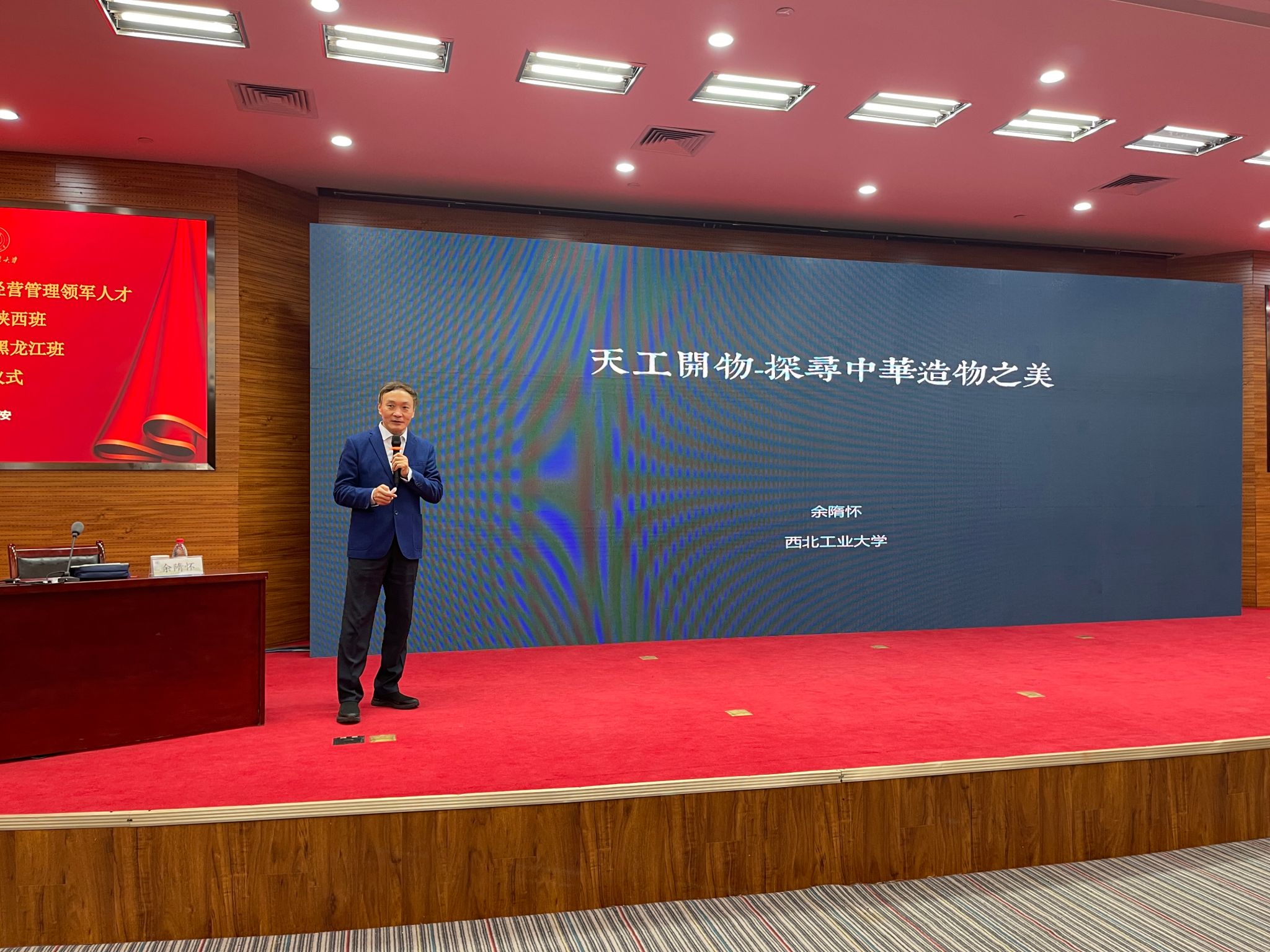 开班/结业仪式结束后,特邀西北工业大学教授、博士生导师,中国工业设计协会副会长,教育部工业设计专业教学指导分委员会副主任余隋怀做专家报告:《天工开物-探寻中华造物之美》,参访西北工业大学国家大学科技园和隆基绿能科技股份有限公司,聆听《双碳战略指引下的隆基光伏引领之路》报告。