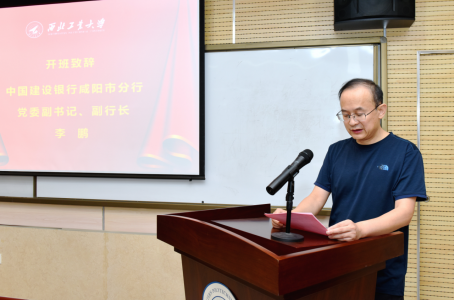 9月4日,由中国建设银行股份有限公司咸阳分行主办、西北工业大学管理学院承办的“‘蔚蓝计划’--对公类营销人员专业能力提升培训班”在友谊校区顺利开班。中国建设银行股份有限公司咸阳分行党委副书记、副行长李鹏,公司业务部总经理周波,人力资源部总经理徐庆,西北工业大学管理学院院长车阿大,EDP中心副主任李莹,项目主管刘冬月及参训学员出席了开班仪式。本次开班仪式由西北工业大学管理学院副院长郭云涛主持。
