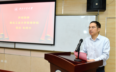 首先,西北工业大学管理学院车阿大院长致辞。车院长对前来参加学习的培训班学员表示欢迎,并简要介绍了学校和学院的历史沿革、基本情况、学科特色与发展成果,他指出本次培训是管理学院在与建设银行咸阳分行人力资源部充分沟通筹备的基础上,精心安排了具有前沿性及实用性的课程计划,希望能够帮助和引导参训学员进一步提升市场营销能力和信贷管理水平,增强团队专业素养,从而为客户提供高层次全方位的金融服务,更好推动分行各项业务高质量发展。