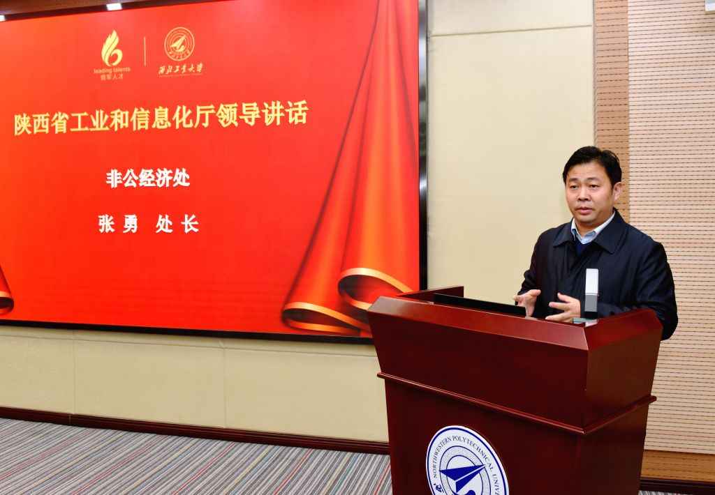 随后陕西省工业和信息化厅非公经济发展处处长张勇讲话,在陕西省工信厅、中小企业人才服务中心、西北工业大学管理学院及社会各界的共同努力下,领军人才项目在陕西省已开办了8个班,共为社会培养了五百多名优秀的企业家。通过培训,企业家素质得到了明显提升,企业的经营管理能力大大增强,企业竞争力不断获得提升,为陕西的经济发展作出了突出贡献。张勇处长表示:“作为陕西省非公企业的主管部门,我们将会继续大力支持领军人才培训项目的开展,为领军企业家和领军企业做好各种服务,包括走进大企业集团、走进市县和重点园区,为各位企业家搭建一个相互学习相互促进协作的平台。”随后向领军人才学员提出三点要求:一要严于律己,认真学习,展示良好形象;二要潜心研修,广泛交流,做到取长补短;三要联系实际,积极探索,做到学以致用。