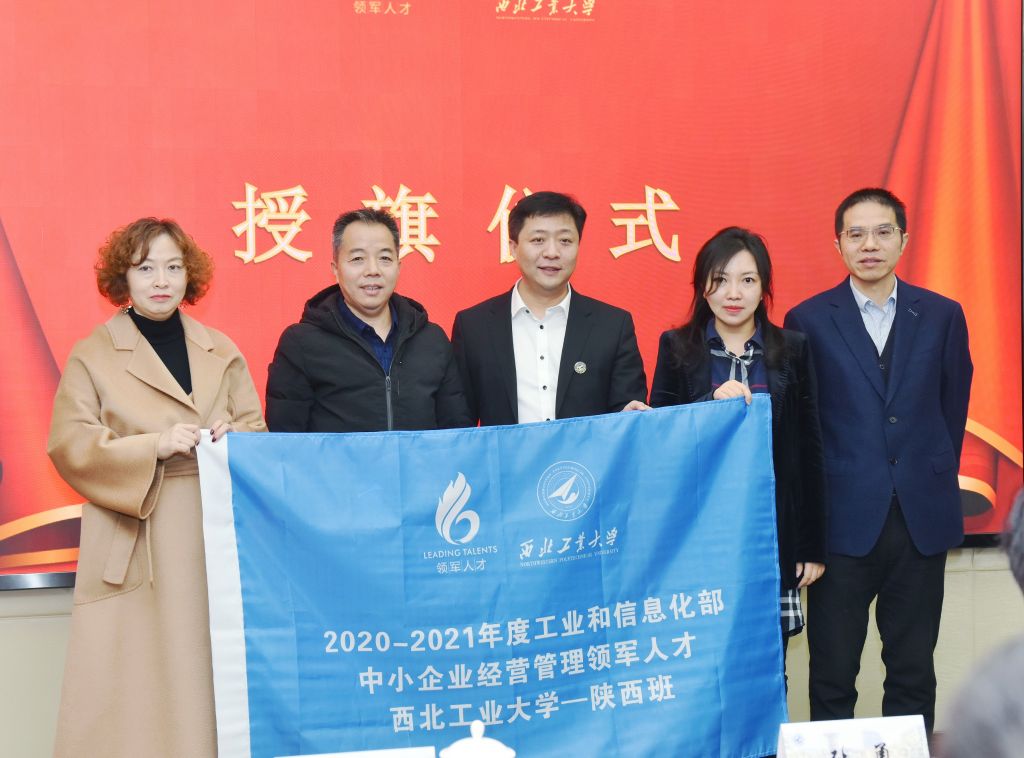 为更好的传承和弘扬“聚是一团火,散是满天星;领军一家亲,全国有亲人”的领军精神和文化,西北工业大学管理学院院长车阿大、陕西省工业和信息化厅非公经济处副处长李满弟向执行班主任李莹、刘放两位老师和新学员代表李佳授旗。