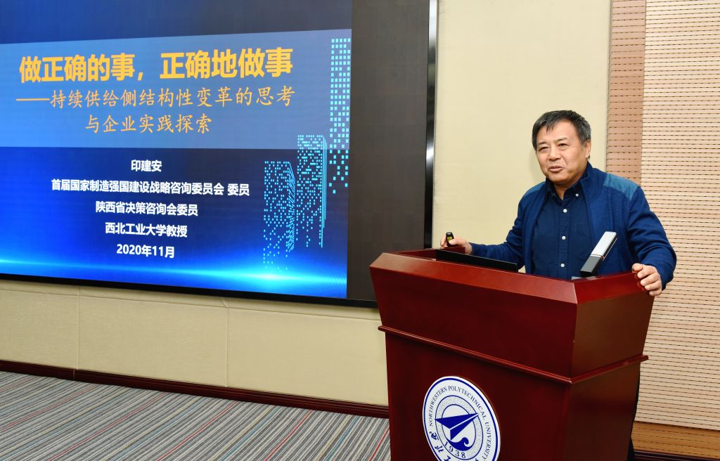 开班仪式结束后,特邀陕西鼓风机(集团)有限公司原董事长、西北工业大学管理学院讲座教授印建安做企业家分享报告:《做正确的事,正确地做事——持续供给侧结构性变革的思考与企业实践探索》。看见未来,才有未来,对于企业家来说,一定要做正确的事,正确的做事,印总给予在座企业家榜样的力量,帮大家理清正确思路,践行于今后的管理工作中。