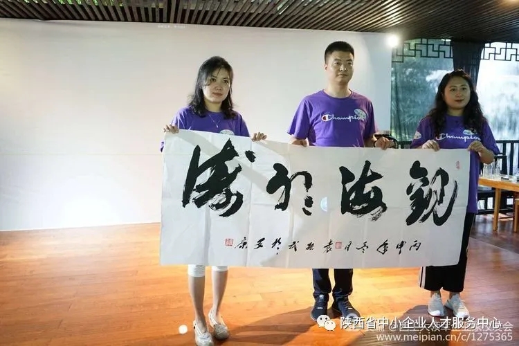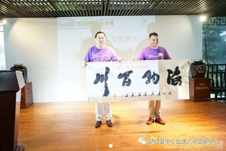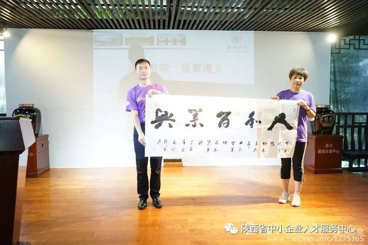 为表达对本次移动课堂活动的感谢,来自陕西安康的三位领军人才校友代表——安康市新的社会阶层人士联谊会会长徐波、安康市青年创业协会副会长刘青叶、平利县恒源电子科技有限公司总经理朱世俊分别向领军企业家校友会、西北工业大学管理学院、贵州龙头马酒业集团赠送了书法作品。