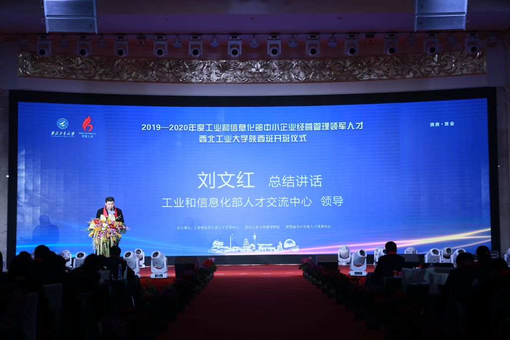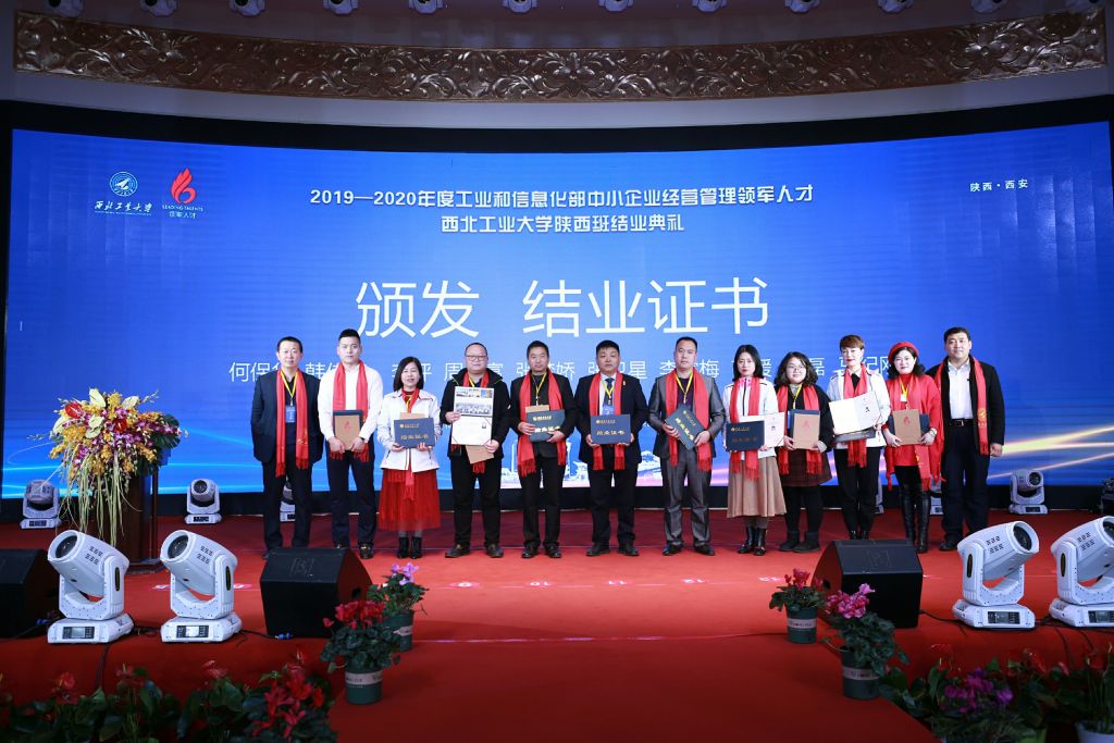 2019年12月20日,工业和信息化部中小企业经营管理领军人才西北工业大学--陕西班2019-2020年度开班、2017-2018年度结业仪式暨陕西领军企业家年度盛典在西安世园会罗曼宴会中心隆重举行。工业和信息化部人才交流中心领军项目负责人刘文红、陕西省工信厅非公经济发展处副处长黄克强(主持工作)、副处长李满弟、陕西省中小企业人才服务中心主任李育鹏、副主任李卫科、科长刘放、西北工业大学管理学党委书记李小聪、副院长郭云涛、EDP中心副主任李莹、2019-2020年度新学员、2017-2018年度结业学员、往期领军人才班校友、各地市中小企业主管部门以及各商协会负责人共260余人参加了本次活动。开班、结业仪式由工信部人才交流中心刘晓闯主持。