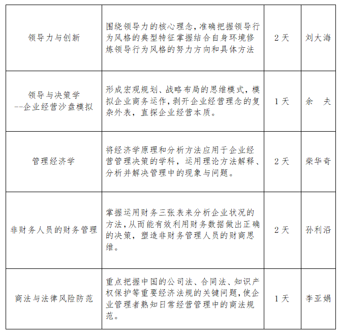 实用的课程内容| 核心课程涵盖工商管理教育课程主题,内容丰富、重点突出,充分满足企业经营管理各方面知识结构的需求。