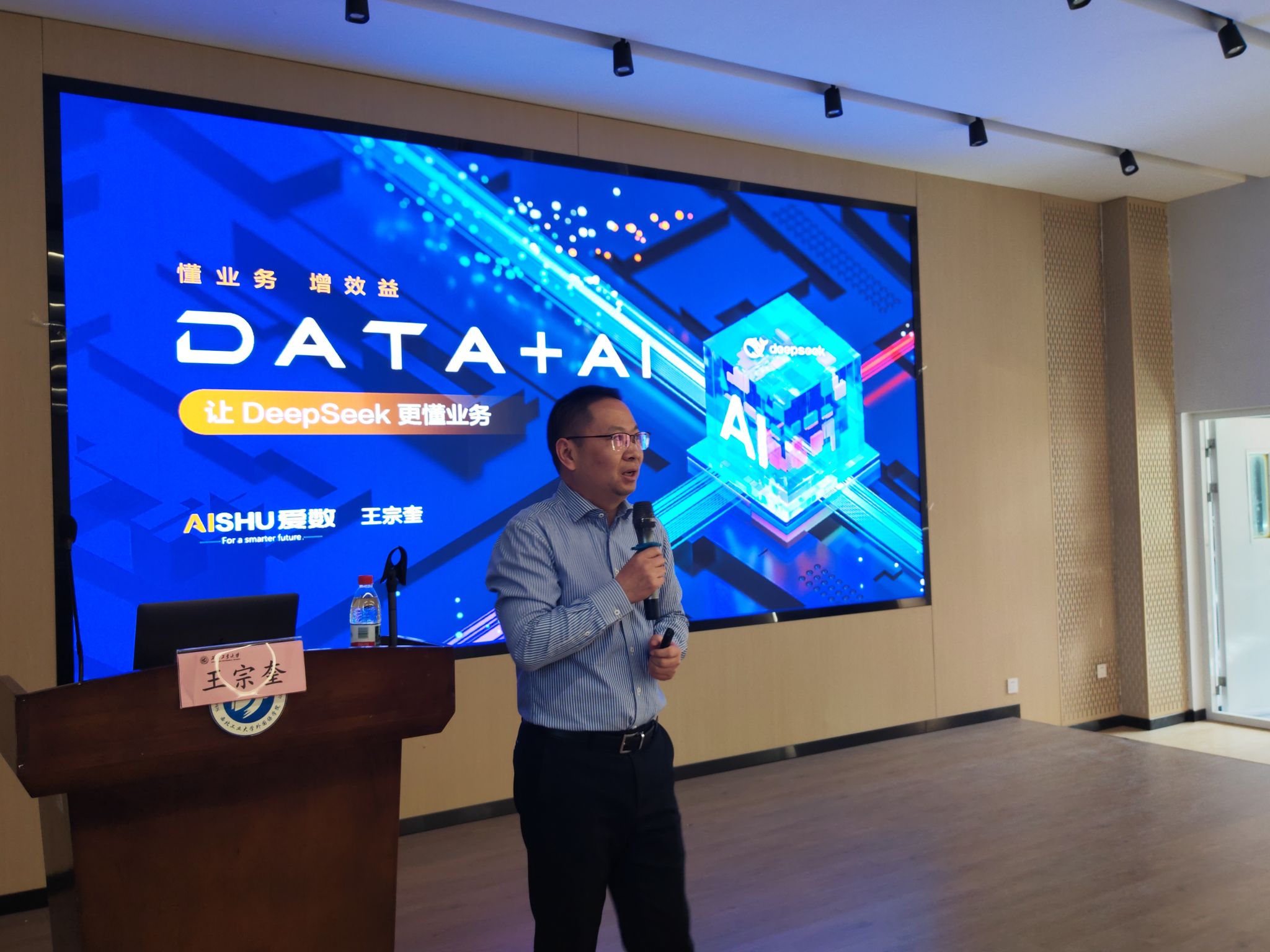 随后,同学们步入启真楼105,听取专题讲座。学院邀请上海爱数信息技术股份有限公司行业总经理王宗奎做题为《Data+AI:让DeepSeek更懂业务》的报告,报告会由管理学院MPAcc教育中心主任金帆副教授主持。