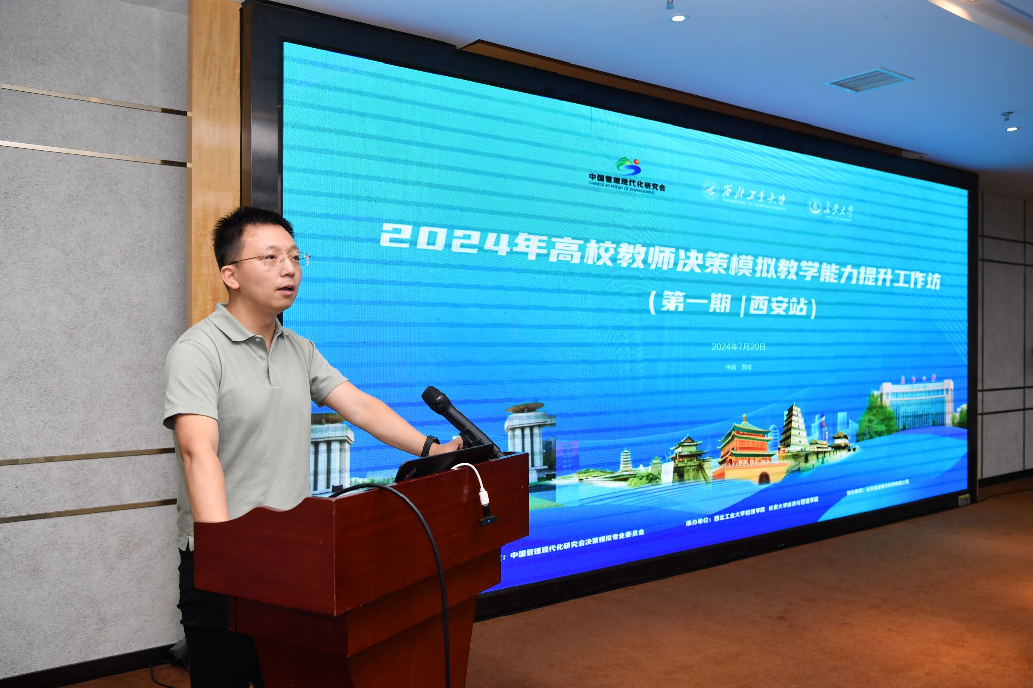 开幕式上,中国管理现代化研究会决策模拟专业委员会秘书长孙永利、西北工业大学管理学院院长助理李乘龙以及长安大学研究生院副院长徐玮依次致辞。三位领导在致辞中对与会的高校教师表示热烈欢迎和诚挚感谢,并强调了实操性强、趣味性高的企业决策模拟教学方法在提升学生学科兴趣和培养高质量管理人才中的重要性。