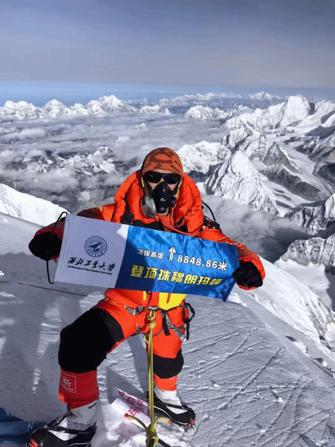 余国明是我院2016级工商管理硕士研究生,热爱马拉松、越野和登山,还是国家级登山运动健将。2024年5月21日,余国明携带西工大校徽旗帜,成功登顶珠穆朗玛峰,让西北工业大学的旗帜,在“世界之巅”迎着凌冽寒风舒展。