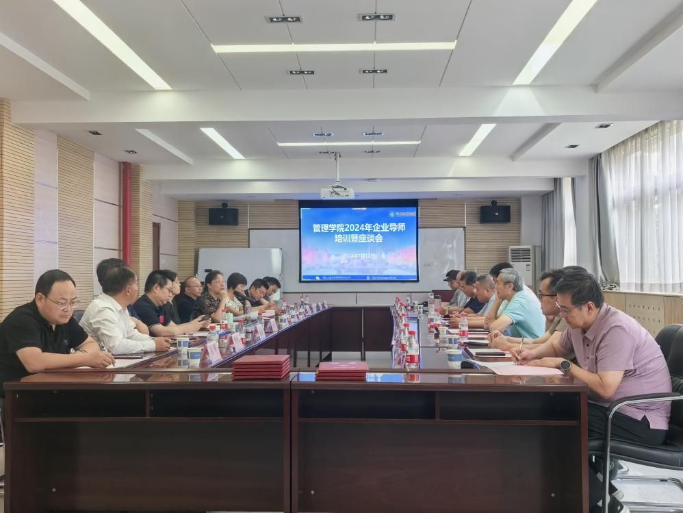 7月12日下午,管理学院2024年企业导师培训暨座谈会顺利召开。本次会议以线上和线下相结合形式进行,学院在聘企业导师代表鲍仁行等18人通过线下形式、陈广飞等100余人通过线上形式参加了会议。管理学院党委书记张爽、MBA/MEM教育中心主任杨宏玲、副主任黄媛、肖平和相关工作人员出席会议。会议由管理学院副院长郭云涛主持。