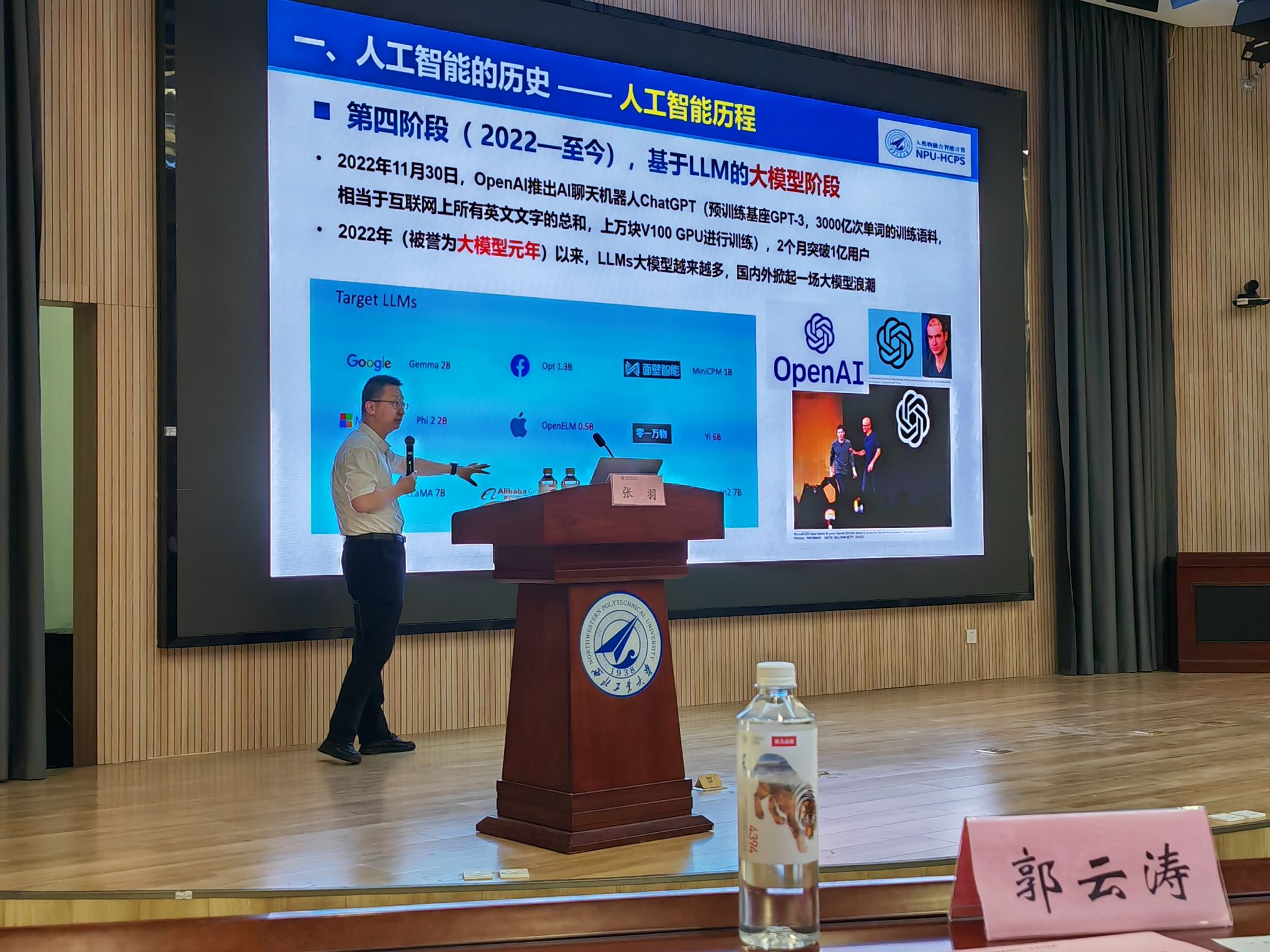 6月8日晚,西北工业大学计算机学院张羽教授应邀在友谊校区为专业学位学生作了题为《人工智能的历史、应用及系统》的报告,本次报告会由管理学院副院长郭云涛主持,2023级MBA/MEM 400余名学生现场聆听。