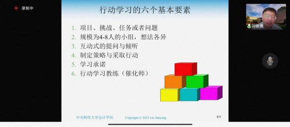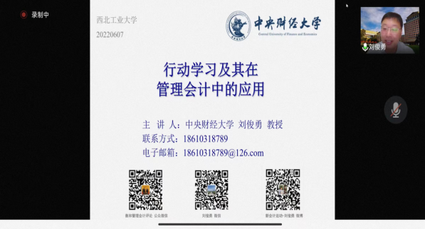 6月7日晚,管理学院通过腾讯会议平台举行了《行动学习及其在管理会计中的应用》报告会,特邀中央财经大学刘俊勇教授做主题分享,学院40多位教师聆听了报告,报告会由MPAcc教育中心主任金帆老师主持。
