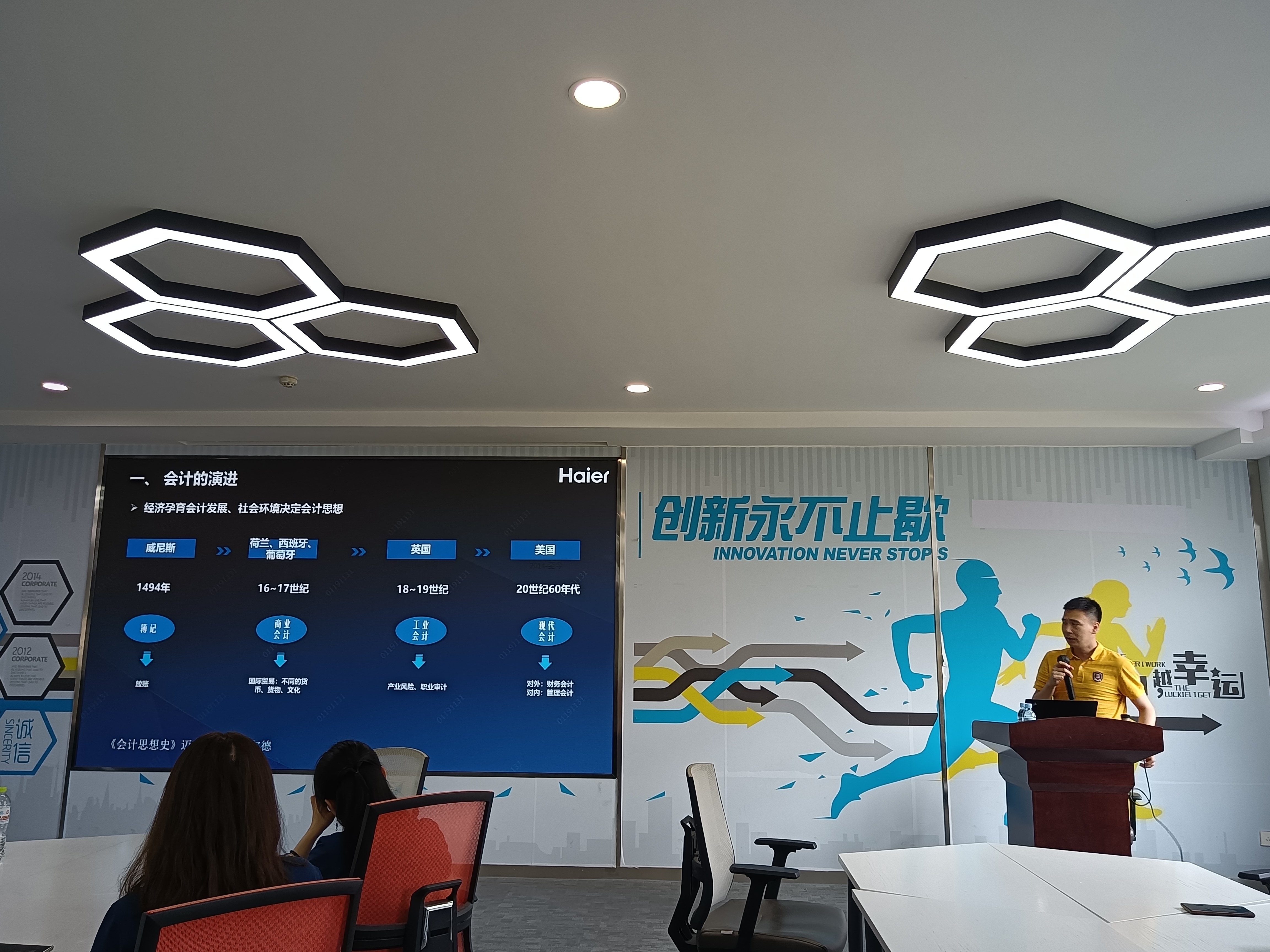 7月20日上午,访学团来到青岛海尔股份有限公司共赢增值表研究院,我院优秀校友、海尔财务创新总监敖翔先生对老师和学弟学妹们的到来表示热烈欢迎,并为大家分享了海尔人单合一和共赢增值表相关内容,介绍了生态视角下的新价值逻辑、发展及应用,并与同学们进行了深度探讨。之后,访学团参观了海尔文化、生活展,详细了解了海尔集团从一个破落的小厂励精图治,到发展成为国际知名企业的艰辛历程,对海尔集团的战略、文化有了更深刻的感悟。