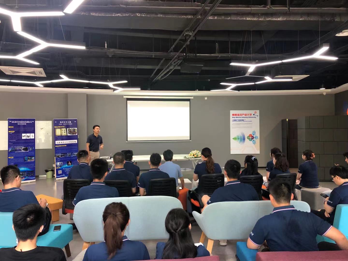 7月19日下午,访学团首先抵达山东易华录信息技术有限公司参访。易华录公司数字海洋事业部副总经理王昀对我院师生的到来表示欢迎,并以《数据湖产业园业务模式的探索》为题,从产业地产特点、开发主体、产业运营模式以及盈利模式等方面进行详细讲述,介绍了华录集团项目-海洋生活与数据产业融合的蓝谷项目,让同学们直观了解到产业园的业务运营模式,同时感受大数据智慧产业园的魅力。讲座之后,访学团参观了易华录集团展厅,了解其智能交通、蓝光存储、文化产业三大板块的核心业务,通过实际案例展示让同学们对智慧海洋大数据产业有了清晰的认知。最后,访学团参观了西北工业大学青岛研究院。