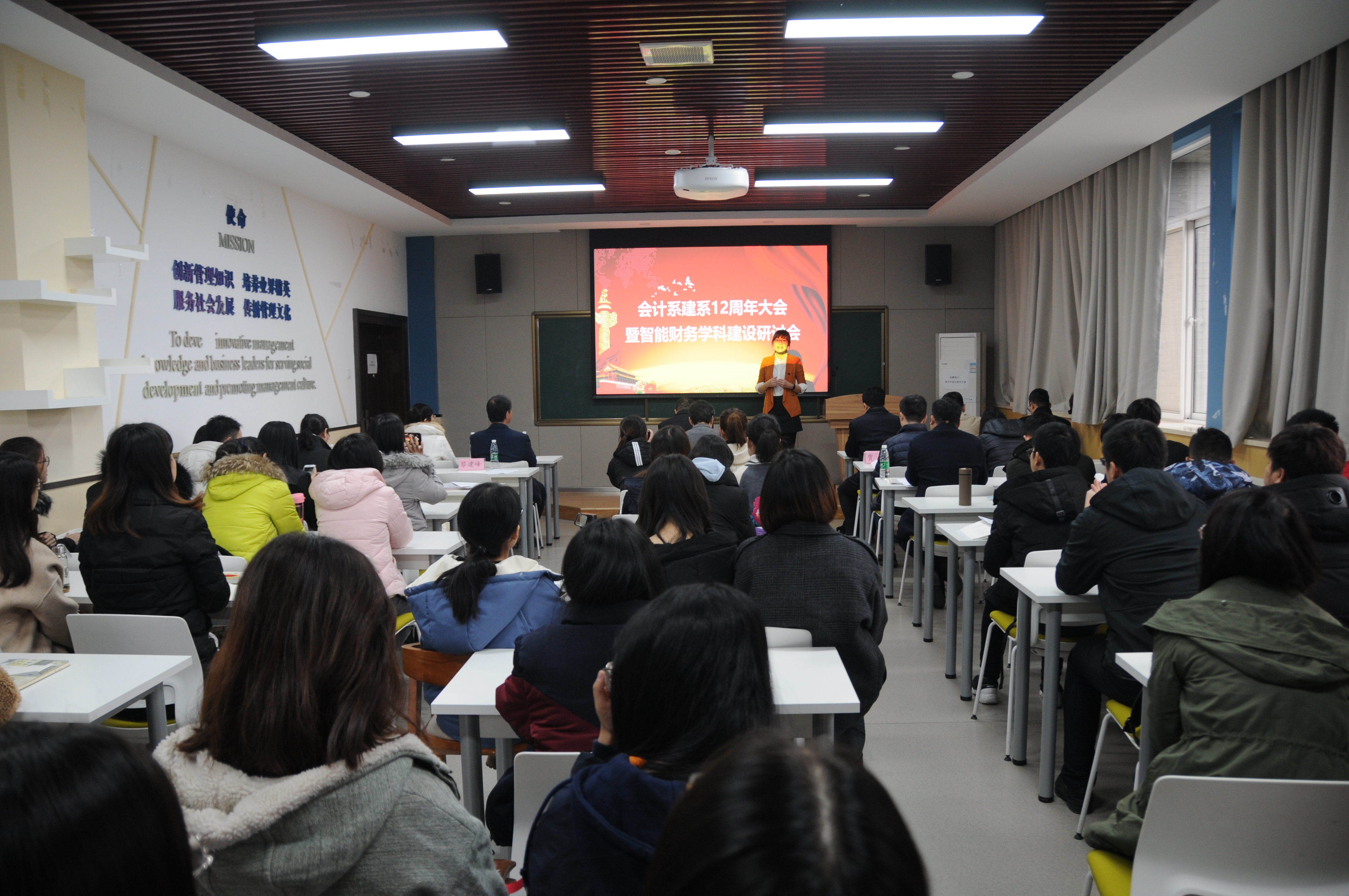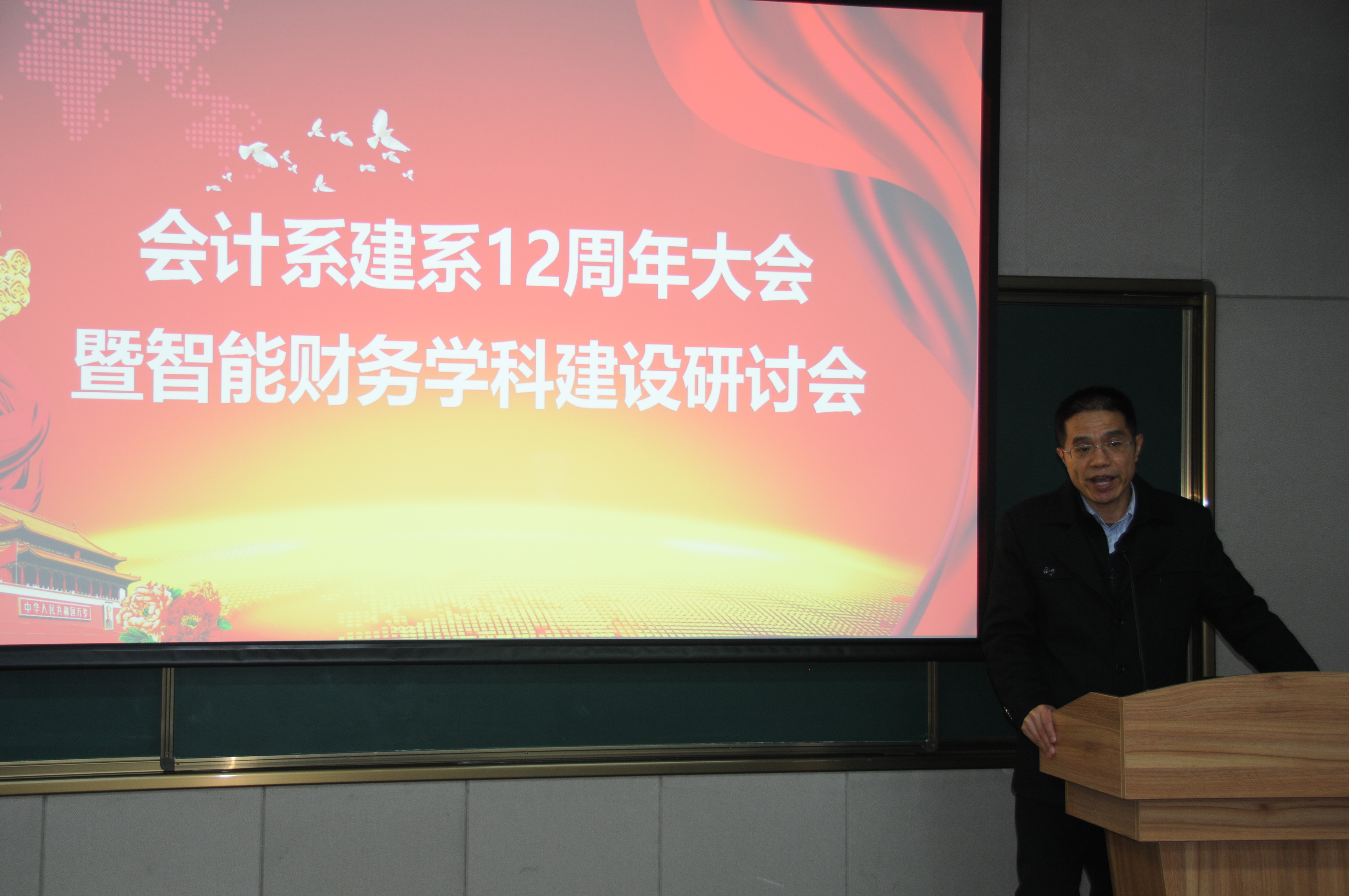 庆祝会计系建系12周年大会由会计系主任助理高伟伟老师主持,金帆主任作了会计系建系12周年发展报告,报告分为会计系发展历程回顾与优秀成果汇报、会计系目前的优势和面临的挑战、会计系未来发展规划三个方面。报告后,管理学院院长车阿大教授进行了致辞,对会计系建系以来的发展及取得的成果进行了充分肯定,对会计系的未来发展提出了更高期望。