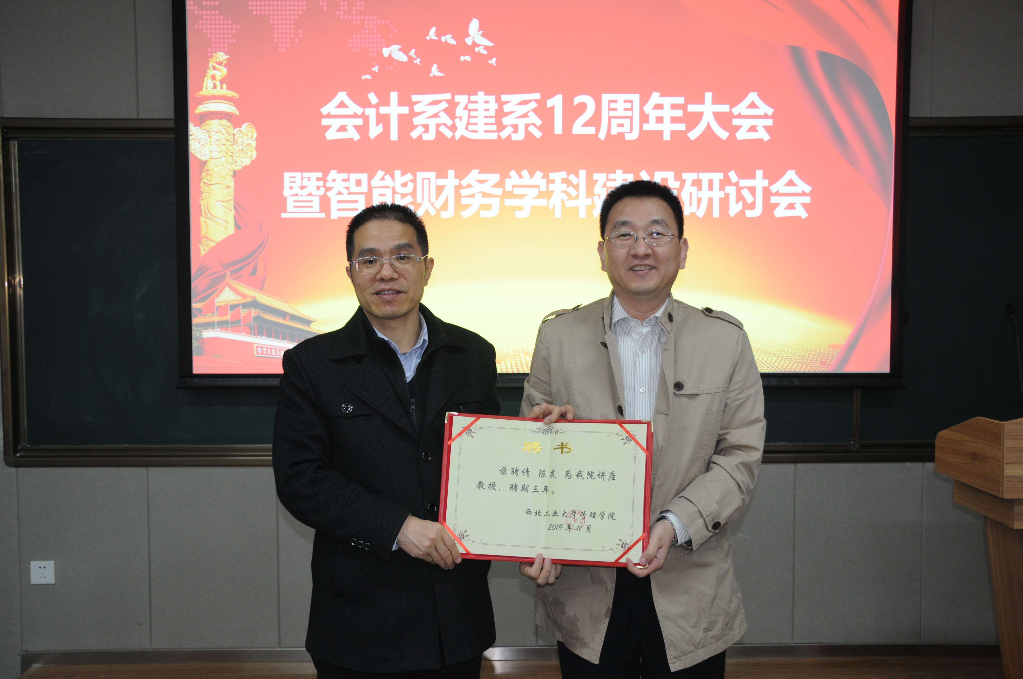 11月27日,我院会计系在长安校区管理学院214报告厅隆重举行了建系12周年大会暨智能财务学科建设研讨会,院长车阿大、党委书记李小聪等院领导到会祝贺,五十余名师生参加了大会。会议特邀西安交通大学管理学院副院长田高良教授、中兴新云服务有限公司陈虎总裁和新道科技公司方案研究与营销事业部杨宝红总经理分别作了主题演讲。