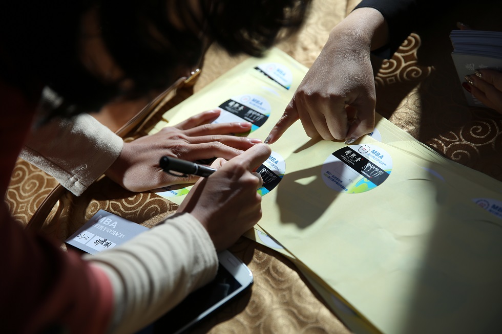 参加本次活动的领导和嘉宾有:西北工业大学管理学院院长赵嵩正、副书记李彩香、MBA中心主任郭德;西北大学经济管理学院副院长吴振磊、MBA中心主任马晓强;长安大学发展研究中心主任蒲济生;以及西安市外国专家局副主任马思拓;陕西省侨商联合会及西安市侨商会、侨青委领导等。当晚,特邀嘉宾及学员们在入口处签到,贴上属于自己的标签,系上专属的金色丝带,将签到卡投到抽奖箱里,准备入场。