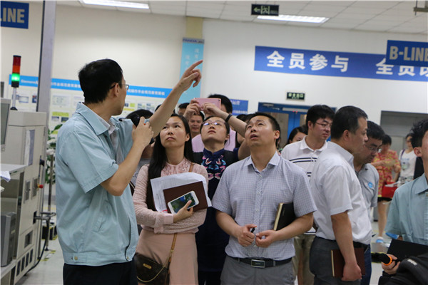 7月10日上午9点,全体学员到达了南京熊猫电子股份公司。该公司于1992年4月由熊猫电子集团有限公司控股成立,是CEC中国电子旗下的骨干企业。在会议室里,公司副总经理胡回春先生致了欢迎词,向学员详细地介绍了熊猫公司的发展历程中的辉煌成就。在随后展开的交流中,与会学员纷纷就企业管理的各方面与胡总经理进行了交流。随后,全体学员在南京熊猫电子制造有限公司副总经理、2015级MBA苏州班学员魏天等先生的带领下参观了公司的生产车间,与魏总进行了充分的交流。