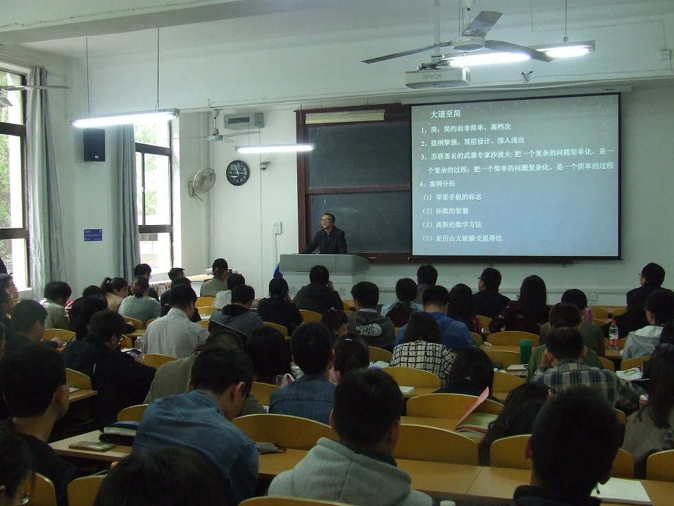 10月16日,我院举办了《中外优秀文化与管理创新-----“系统变革”与“大道至简”》讲座。本次讲座主讲人为我院经济贸易系教授李建中老师。专业学位2016级MBA、MEM全体学员聆听了本次讲座。