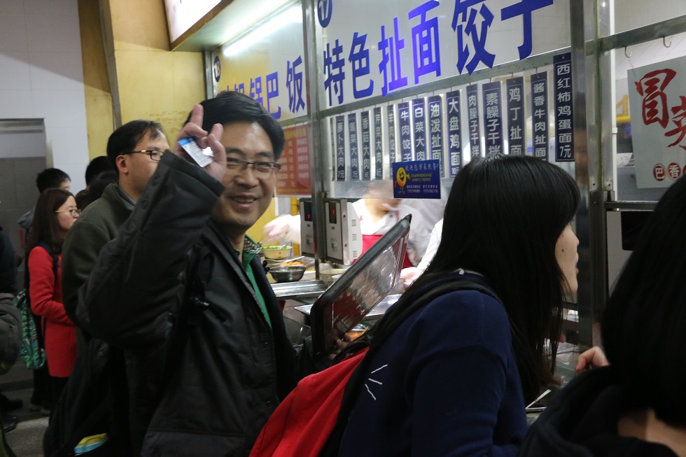 午餐时间,同学们来到第二学生餐厅,同学们赞叹西工大食堂果然名不虚传,饭菜品种非常丰富,也非常实惠。离开校园多年,又能用校园一卡通刷出学校食堂的味道,有种别样的幸福感。大叔级的MBA学员们一边吃一边还与身边的小学弟小学妹攀谈起来。