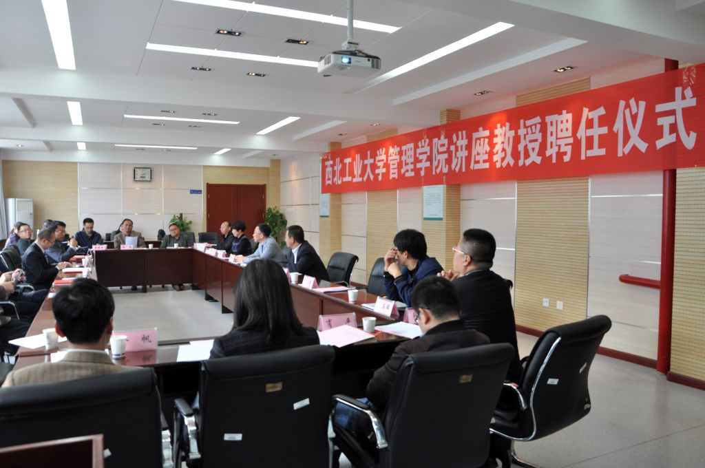 2017年10月23日,管理学院在友谊校区学院楼402会议室举办杰出企业家讲座教授聘任仪式。学校副校长张卫红,校友总会秘书长张英群,西工大深圳研究院副院长韩建新,管理学院副院长王克勤、党委副书记张翠仙、部分系主任及管理学院专业学位教育中心各位负责人等近20人出席了授聘仪式。聘任仪式由管理学院党委书记李小聪主持。