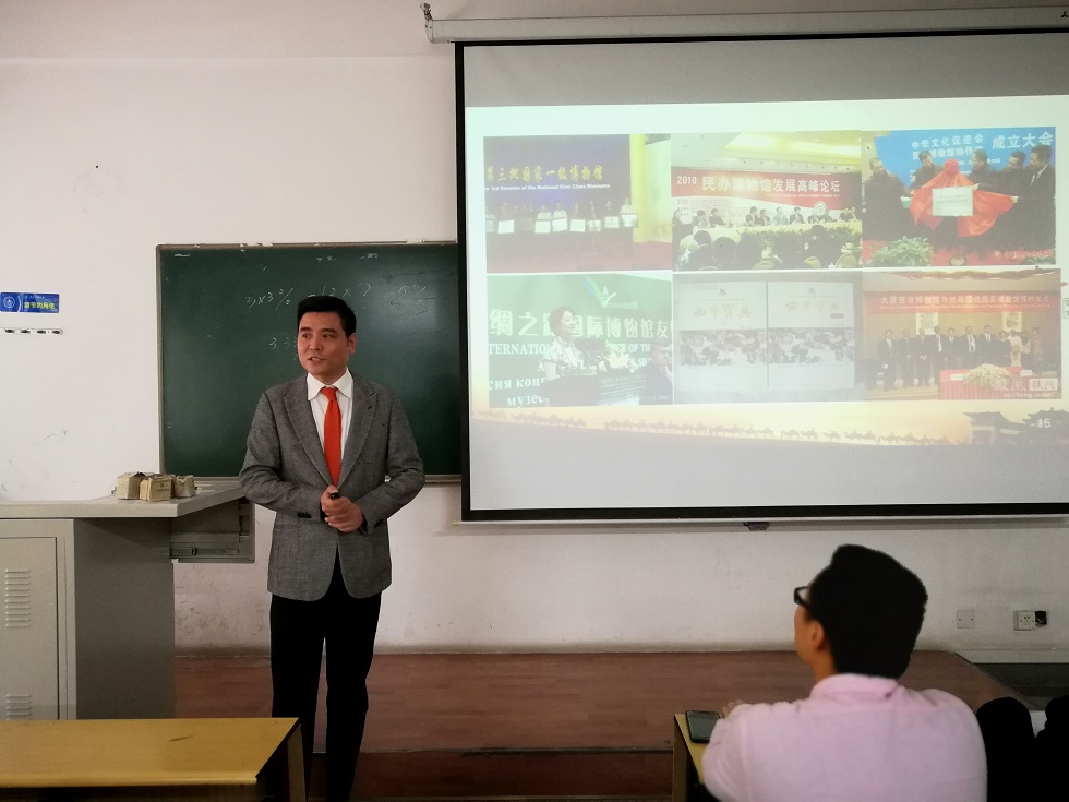 校友李强首先以诗仙李白的诗歌“五陵年少金市东,银鞍白马度春风 落花踏尽游何处,笑入胡姬酒肆中”开场,讲述了大唐西市的历史渊源,回顾了大唐西市集团作为陕西民营文化企业的代表如何顺应国家经济发展大战略,从小做大做强的发展历程。然后,李总结合自己的工作经历,与同学们一起分享了该集团在国家“一带一路”的发展思路和实践方案,系统、生动、形象的讲述了大唐西市历史文化、大唐西市集团的产业结构、经营发展模式、经营策略和文化理念,剖析了大唐西市“丝绸之路”与国家“一带一路”的关系。使同学们对文化企业的管理模式,运作流程,发展战略有了直观,深入的了解。