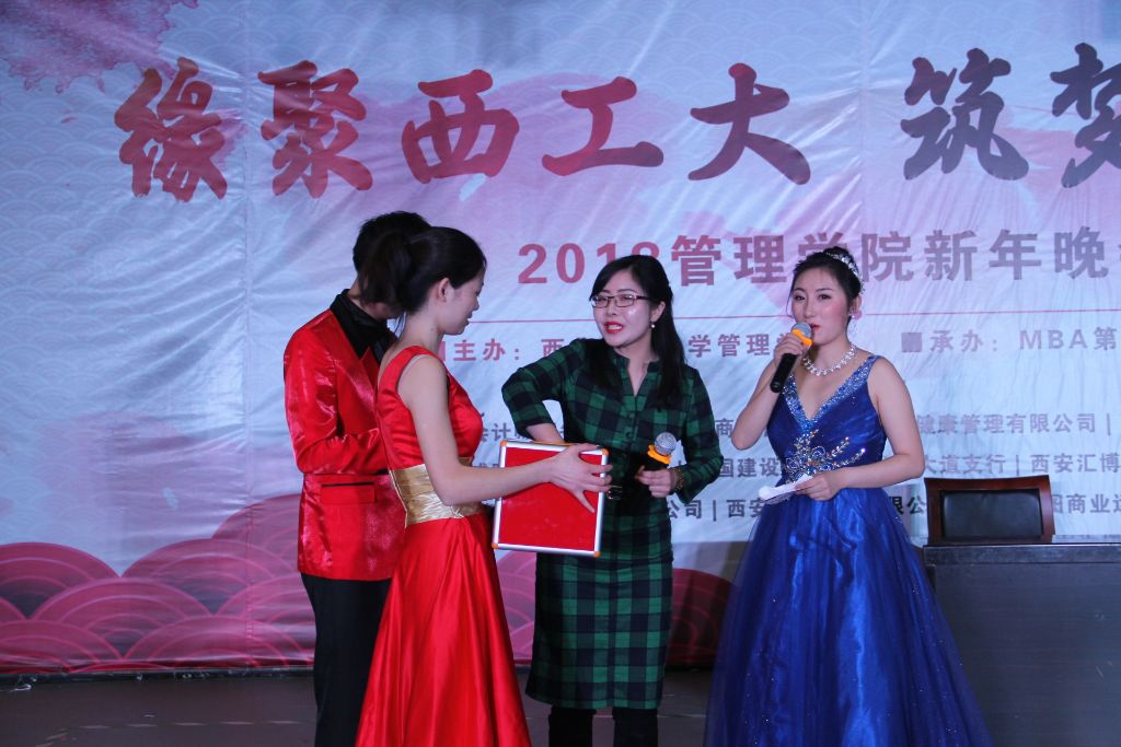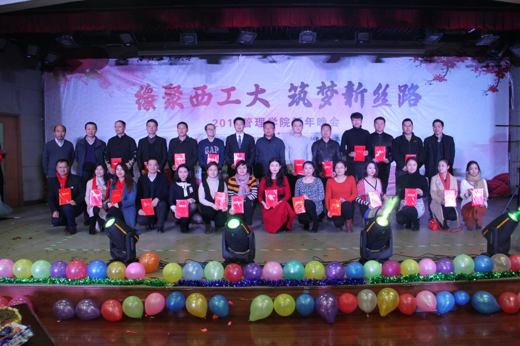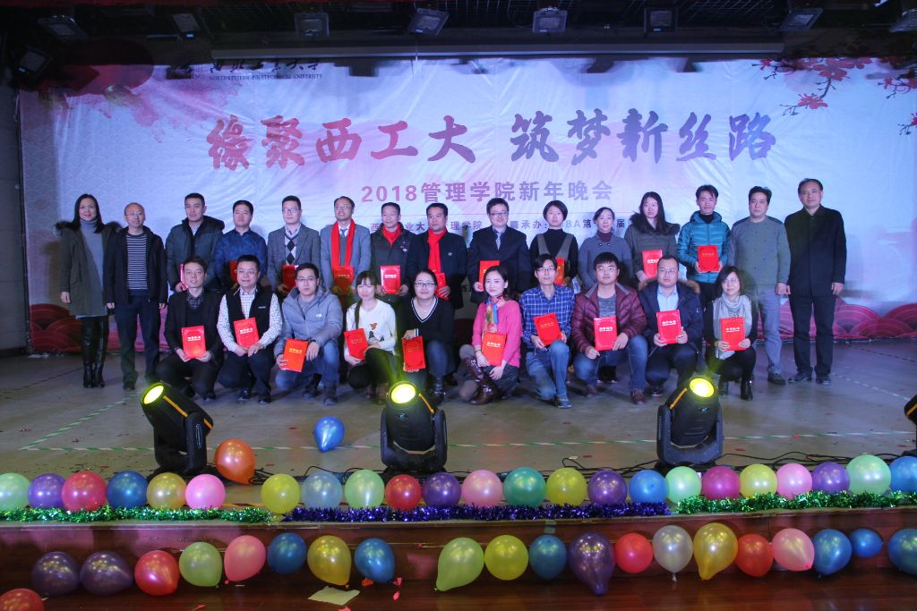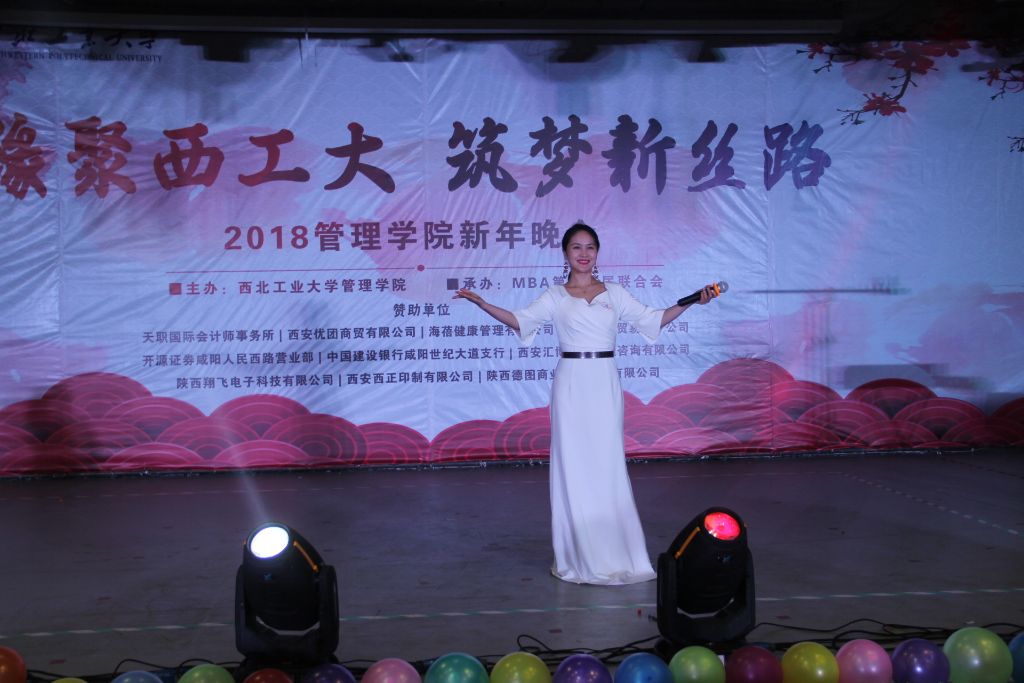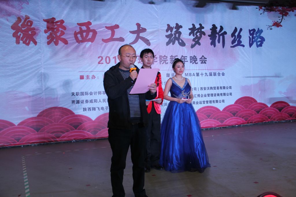 “心随缘聚西工大,行从梦筑新丝路”!2017年12月30日18时,由西北工业大学管理学院主办,第十九届MBA联合会承办的“缘聚西工大,筑梦新丝路”专业学位研究生新年晚会在友谊校区健翔楼多功能厅隆重举行。西北工业大学研究生院副院长晁小荣、校友总会秘书长张英群、管理学院院长车阿大、管理学院党委书记李小聪、管理学院副院长刘晨光、MBA/MEM教育中心主任郭云涛、副主任孙若妮以及高级管理教育培训中心主任郭德出席了晚会。支持赞助单位的嘉宾:陕西翔飞电子工程有限公司总经理杨鹏飞、西安西正印制有限公司文创事业部经理祁元元、西安优团商贸有限公司总经理兰满俊、陕西德图商业运营管理有限公司总经理仵崇锋、开源证券咸阳人民西路营业部总经理柏雨辰、中国建设银行咸阳世纪大道支行行长刘敏、樊登读书会---汇博分会朱晓亮和天职国际会计师事务所及海蓓健康管理有限公司代表参加了晚会。来自陕西工商管理硕士学院、西安交通大学、西安电子科技大学及北京大学光华管理学院等多个兄弟院校的嘉宾和我校管理学院MBA/MEM师生及校友约400人欢聚一堂参加了晚会。