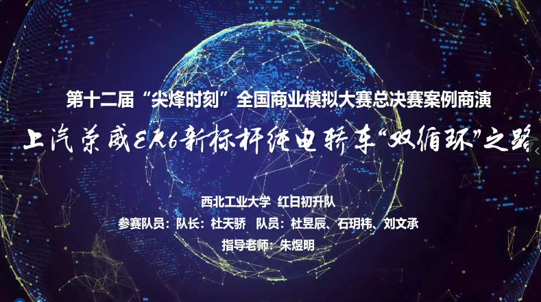 9月9--13日,第十二届“尖烽时刻”全国商业模拟大赛总决赛通过zoom平台线上成功举办。由我校2019级MBA学生杜天骄,杜昱辰、石玥祎、刘文承组成的“红日初升”队,通过商业路演视频拍摄、英文团队介绍、平台商业模拟运营、商演答辩等环节的综合比拼,最终喜获MBA研究生组全国一等奖和最佳视频奖两项殊荣。我校也是西部地区唯一一所获得全国一等奖的高校。