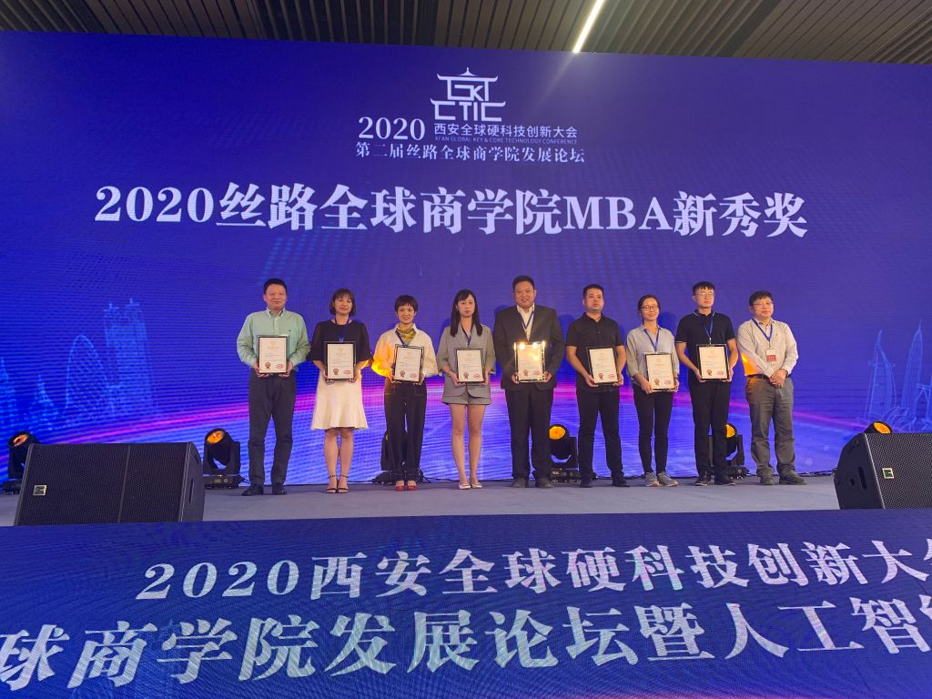 当晚,举办的“荣耀商学”人工智能创投产业峰会颁奖盛典推出多个奖项,主要表彰那些在科技创新、创业及商学院发展教育以及为推动商业发展与科技创新融合做出突出贡献的教师、优秀学员及商业精英。颁奖盛典上,西北工业大学MBA获得2020丝路全球商学院最具品牌价值MBA项目,西北工业大学管理学院专业学位联合会获得丝路全球商学院优秀MBA联合会奖,郭云涛副院长获得丝路全球商学院商科教育领军人物,孙若妮副主任获得丝路全球商学院MBA杰出贡献奖,朱煜明教授获得丝路全球商学院MBA十大精英人物,2019级MBA学生许炜、孙青、滑淑婷获得丝路全球商学院MBA新秀奖。