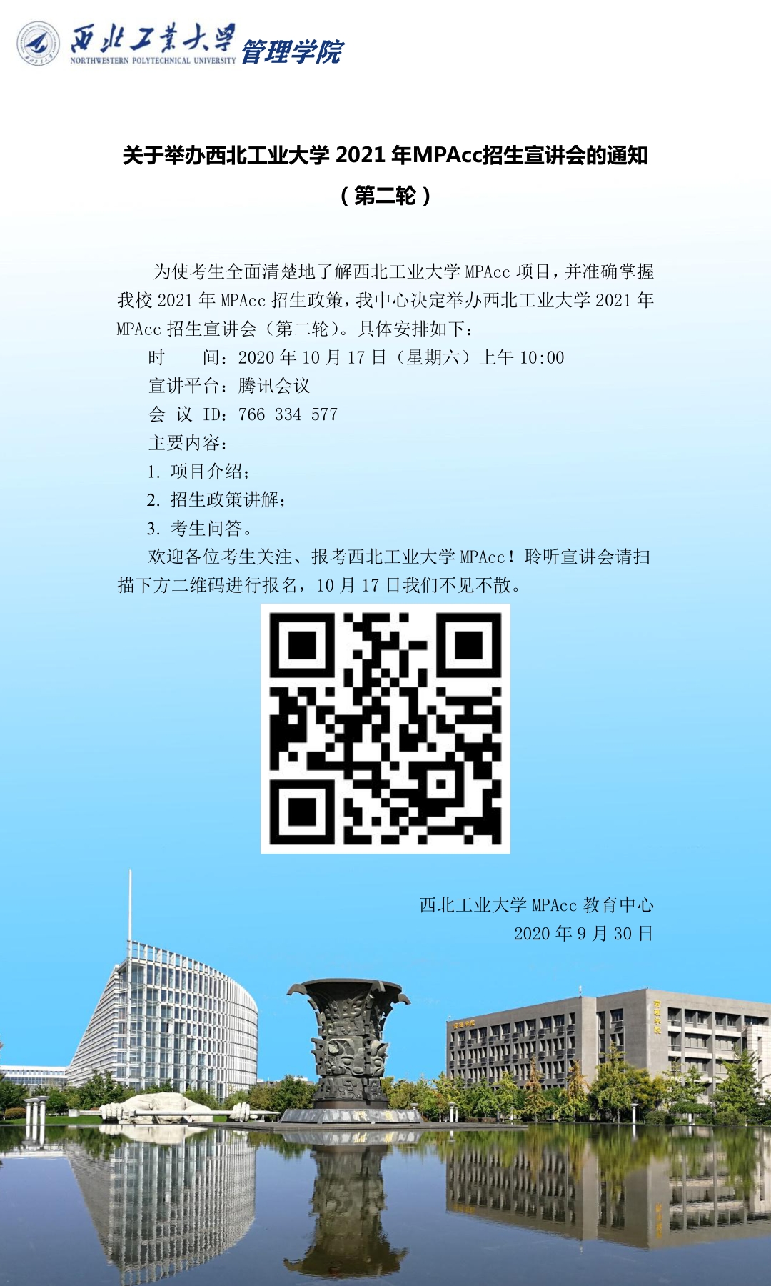 关于举办西北工业大学2021年MPAcc招生宣讲会的通知(第二轮)