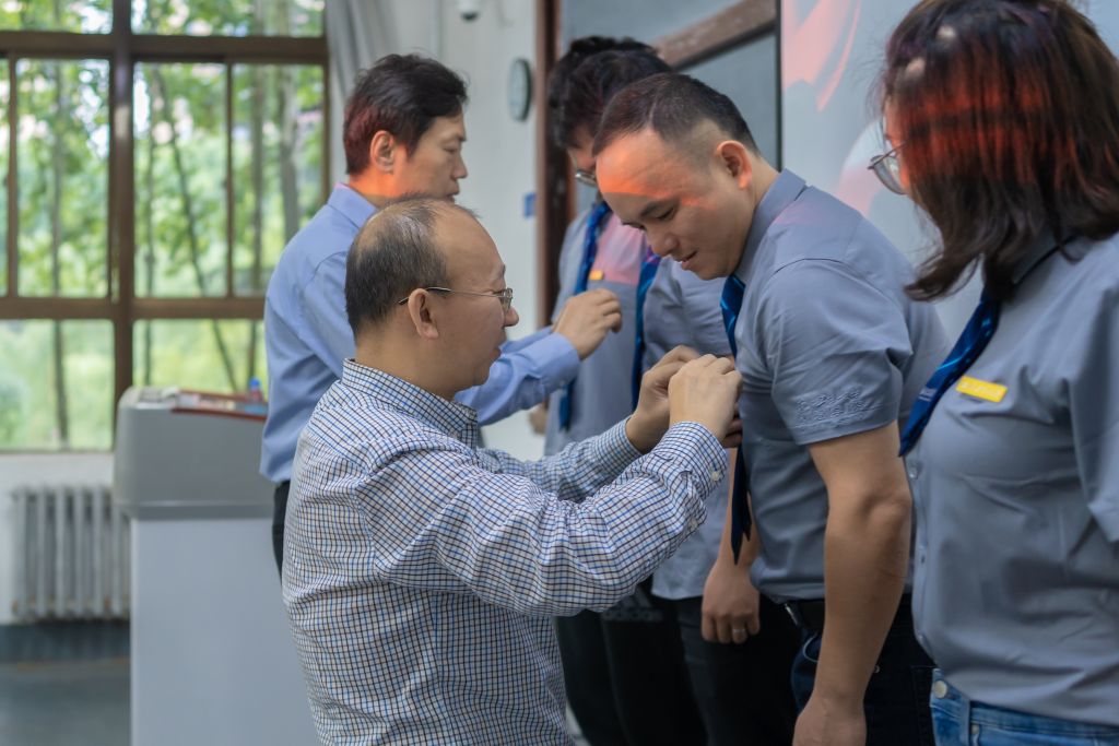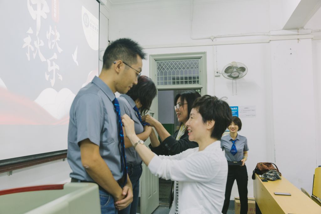 管理学院院长车阿大、党委书记乔彩燕、副院长郭云涛、副书记樊琳、MBA/MEM教育中心主任杨宏玲、MPAcc教育中心/管理案例研究与开发中心主任金帆、MBA/MEM教育中心副主任孙若妮、肖平,利用上课前的时间,分别到各班的教室,为各班授予班旗,为新生代表佩戴校徽,并为2021级新生送上了中秋月饼以及对学子们浓浓的关爱和满满的祝福。