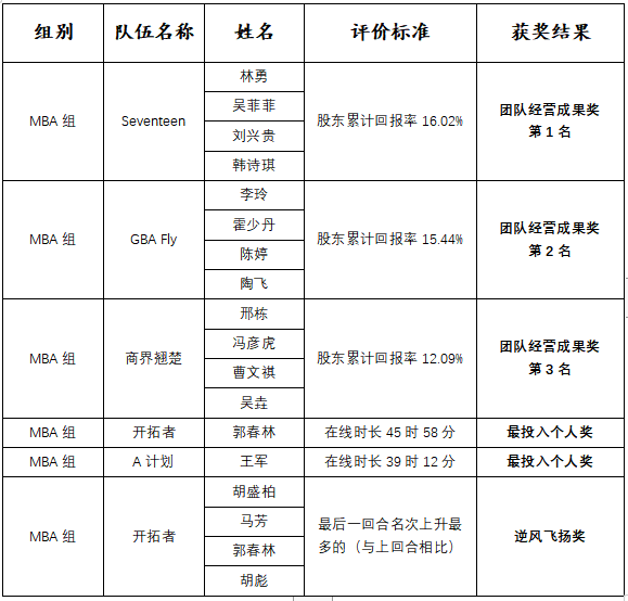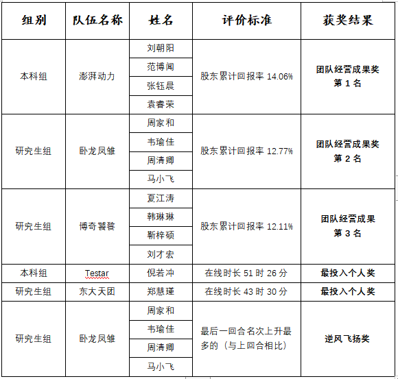 附1:第四届西北工业大学“尖烽时刻”商业模拟校园赛获奖名单