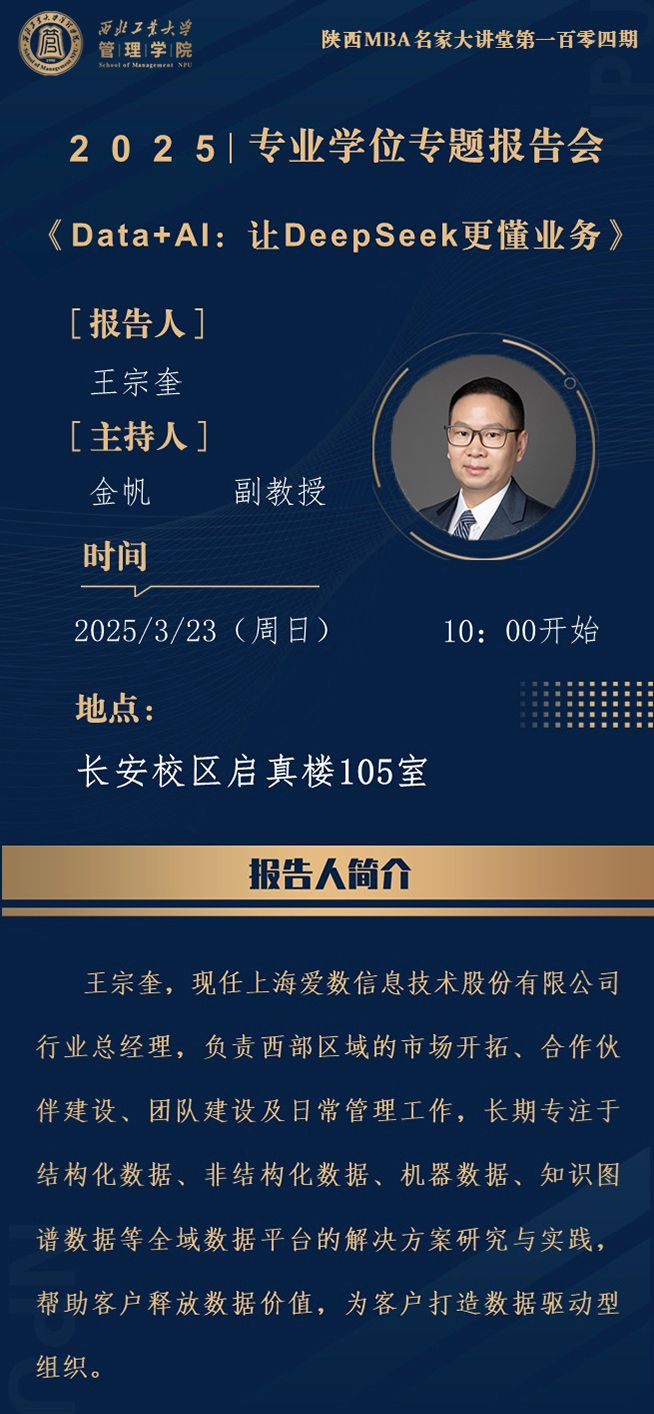 专业学位专题报告会预告|《Data+AI:让DeepSeek更懂业务》
