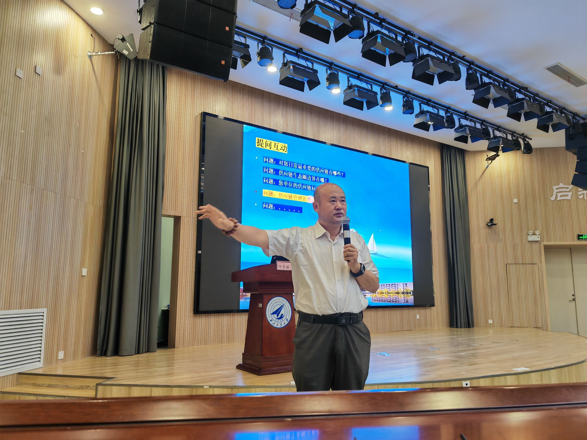 6月21日晚,管理学院MBA校友、陕西德图商业运营管理有限公司仵崇锋总经理应邀在友谊校区为专业学位研究生作了题为《人工智能及贸易战背景下的供应链新思维》的报告,报告由管理学院副教授黄辉主持,2024级MBA/MEM/MPAcc 200余名学生现场聆听。