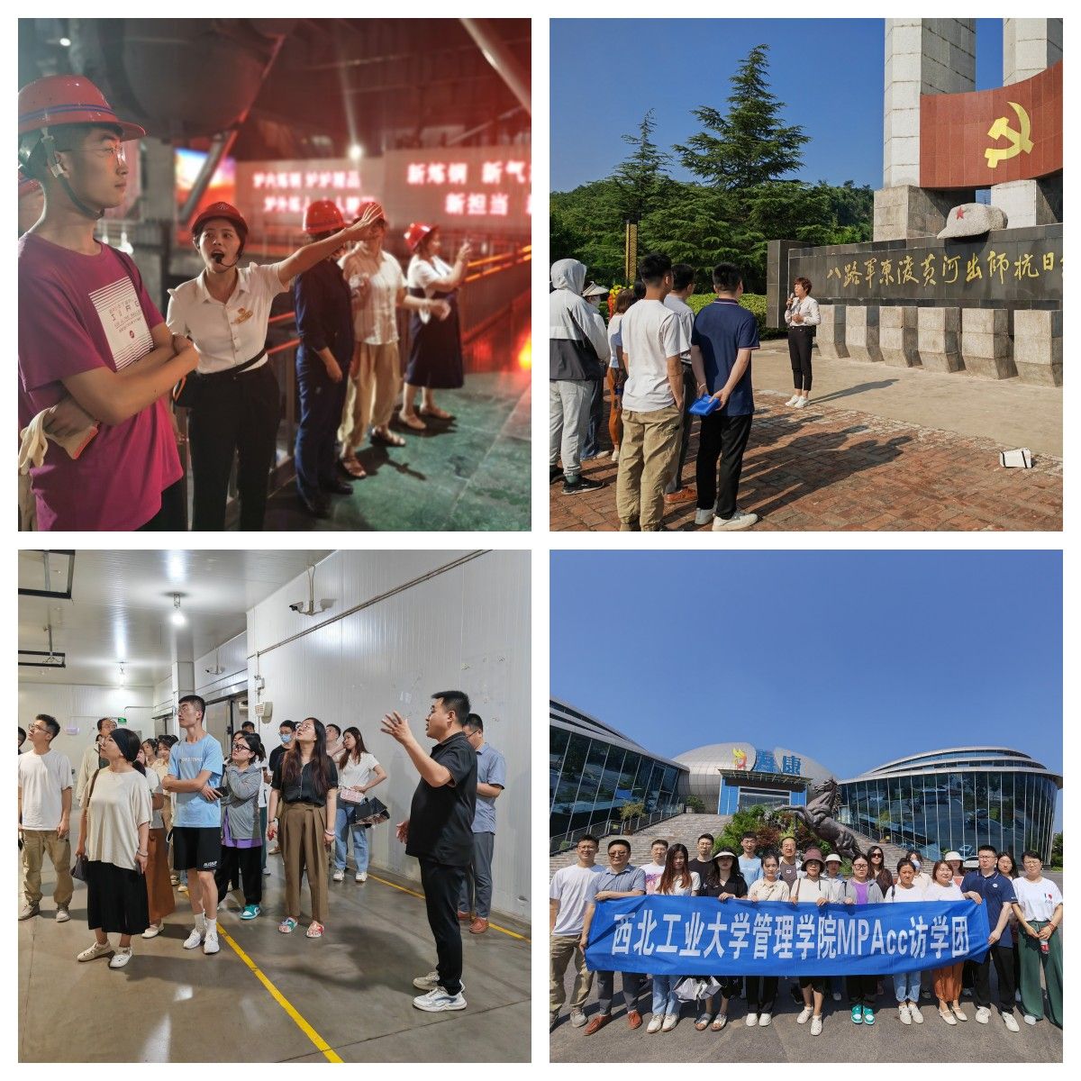 此次访学,同学们参观了陕西汽车控股集团有限公司天行健车联网展厅、汽车装配厂等,观摩了物联网在汽车领域应用的前沿科技,在陕西红马科技有限公司的锂电正极材料智能工厂的智能化生产线,了解到从原料进厂到产品出厂全程实施工艺实时监控手段,确保产品质量和工艺稳定性的技术。在梁带村芮国遗址博物馆,同学们感受到了浓厚的中国历史文化,在陕钢集团龙门钢铁有限责任公司炼钢厂连铸生产车间,同学们在1500度的钢水工作环境中体验了“钢铁是怎样炼成的”。同学们还参观了八路军东渡黄河出师抗日纪念地和廉政教育基地司马迁祠,在陕西为康生物科技股份有限公司花椒生产园区和花椒产品储存加工智能化厂区,感受到了农产品与科技的完美结合。
