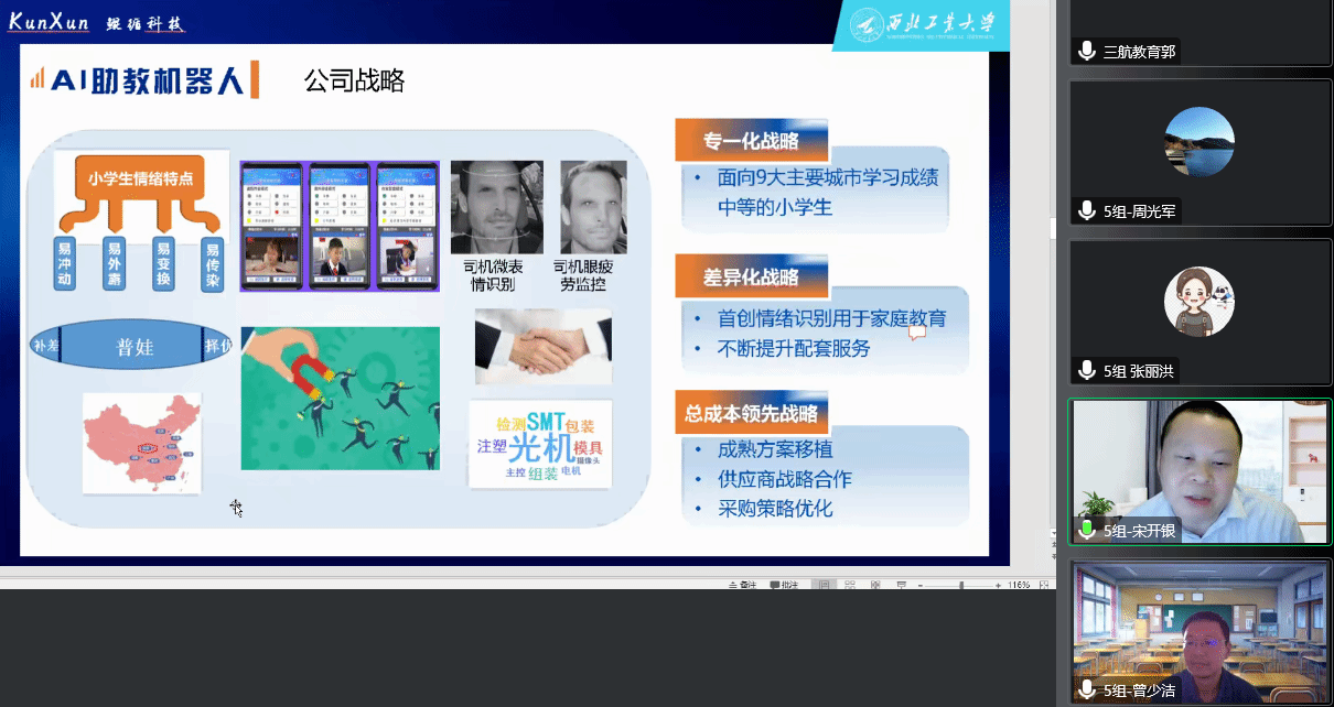 11月12日,第四届西北工业大学MBA、MEM创业大赛校园赛复赛在线成功举行。本次创业大赛自今年3月启动,经历项目挖掘、团队组建、训练营指导、初赛商业计划书评审四个阶段,最终“密阵人工智能停车综合体”“植物基新茶饮品”“智能助教机器人”“星海数藏——数字藏品平台”“深圳社牛物联网智慧化养牛”“博岚科技3D打印”“有情怀智慧养老项目”7支队伍进入复赛。