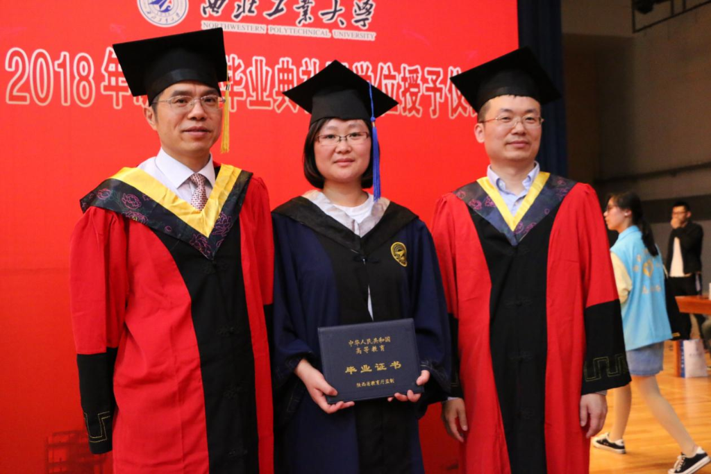 管理学院院长和副院长为毕业生授予学位并合影留念