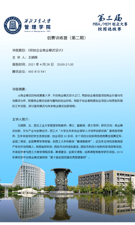 第三届MBA/MEM创业大赛校园选拔赛 创赛训练营第二期:初创企业商业模式设计