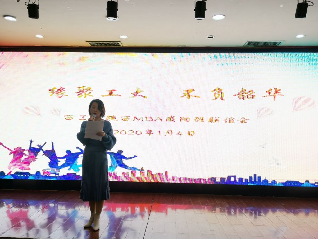 2020年元月4日,我院陕西MBA咸阳班“缘聚工大,不负韶华”迎新晚会在咸阳隆重举行。我院MBA教育中心主任杨宏玲、学院任课老师代表、班主任老师、历届校友及2019级MBA咸阳班学生共约50余人齐聚一堂,一起重温我院陕西MBA咸阳班自2014年创立以来的发展历程,共同感受历届校友的青春风采。