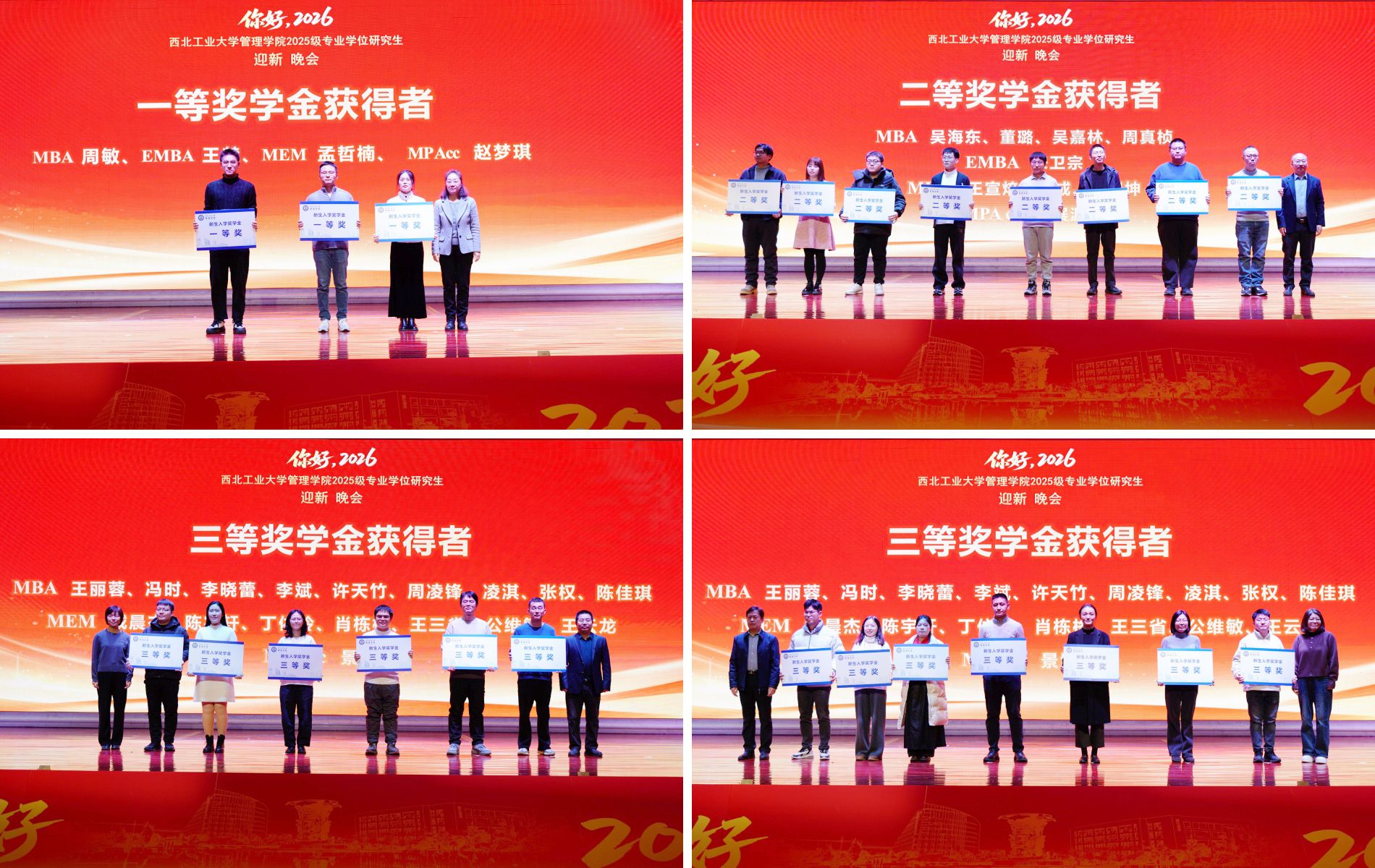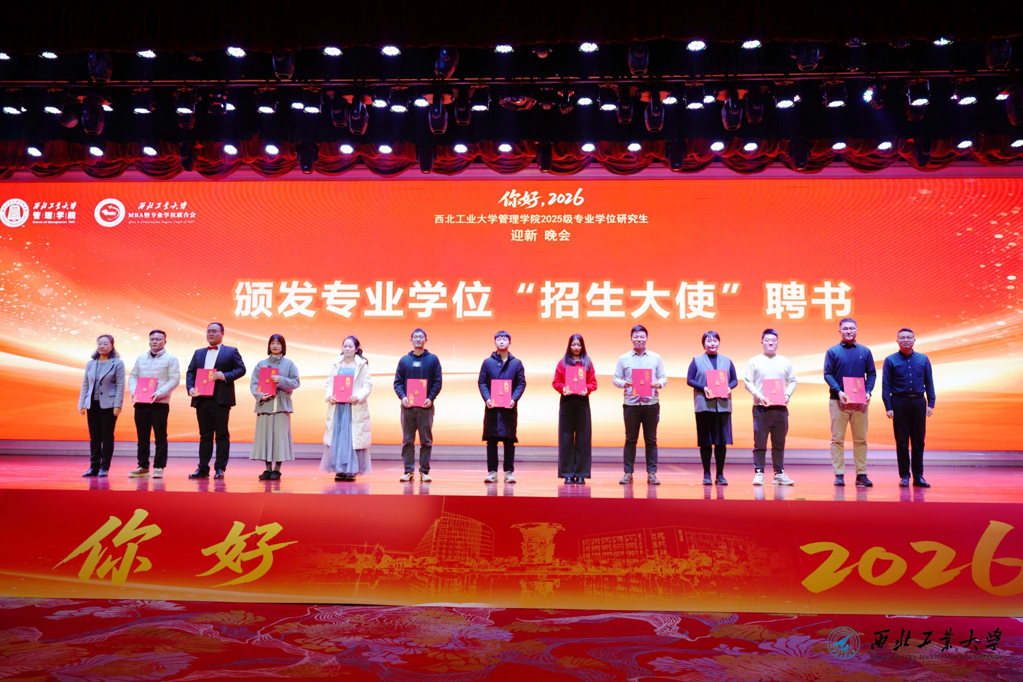 2026年1月1日晚,管理学院2025级专业学位研究生迎新晚会在金色大厅隆重举行。学院领导、工作人员、部分校友和2025级全体专业学位研究生新生参加了此次晚会。